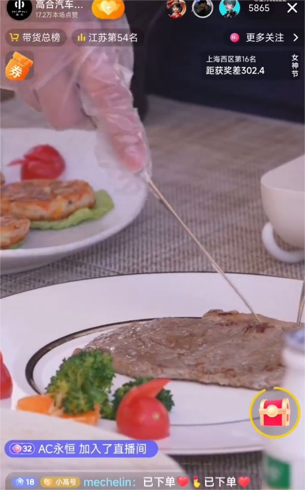 不过,高合直播间所卖的产品并不是公司主营的汽车,而是牛排、鸡排、烤肠等食品。据21世纪经济报道,其上架的产品中最便宜的是29元的蛋挞皮,最贵的一款为售价888元的澳洲牛排。